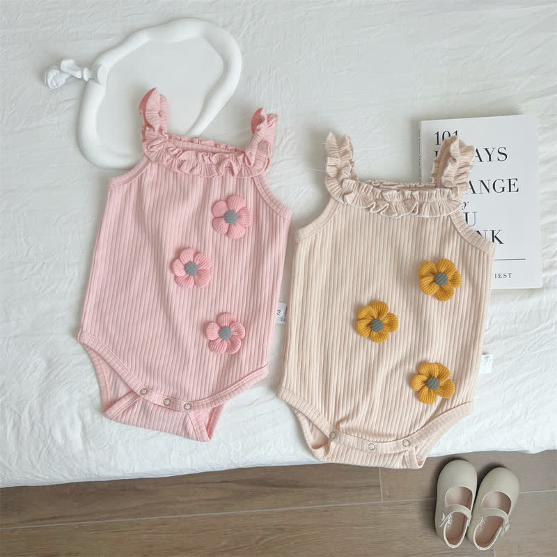 Baby 3D Flower Pleated Lace Suspenders Bodysuit