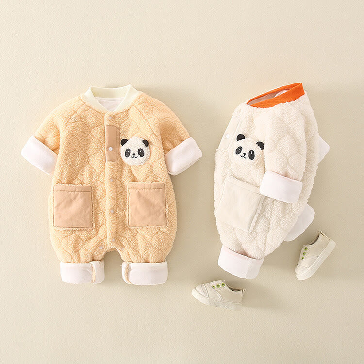 Baby Cute Panda Teddy Fleece Pocket Romper
