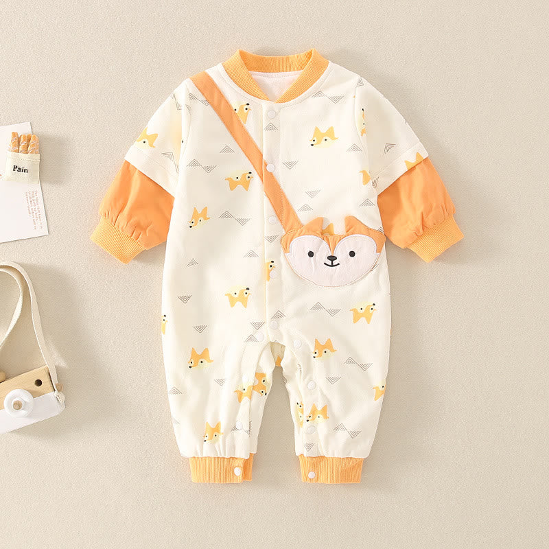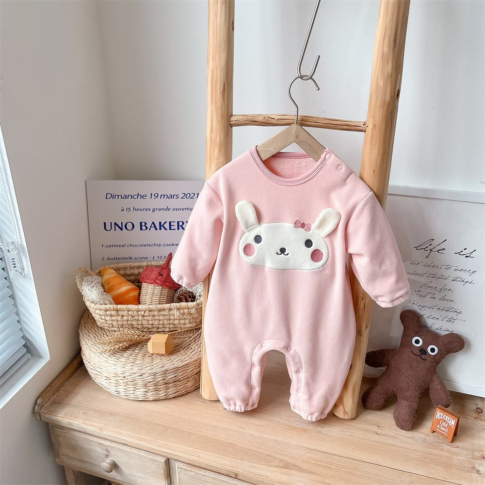 Baby Fleece Cartoon Bear Head Bodysuit with Bonnet
