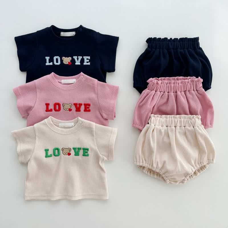 LOVE Baby Embroidered Bear Tee and Bloomers Set