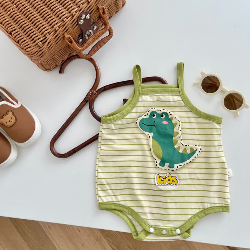 KIDS Baby Striped Dinosaur Strap Bodysuit