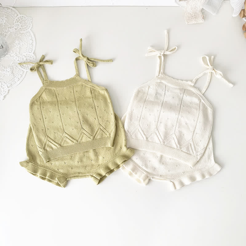 Baby Hollow Out Knitted Camisole and Shorts Set