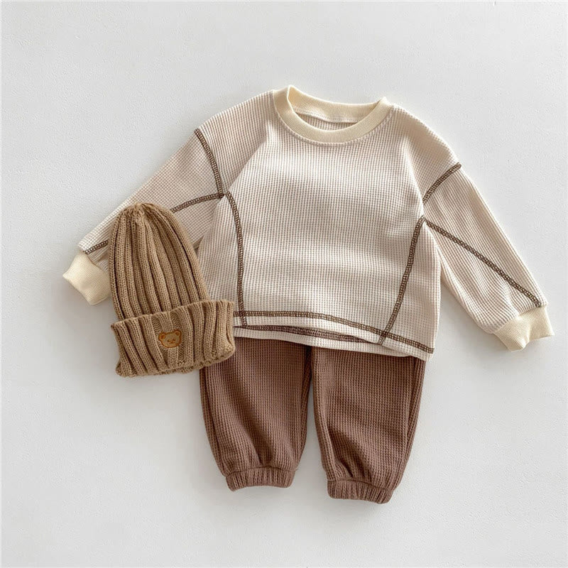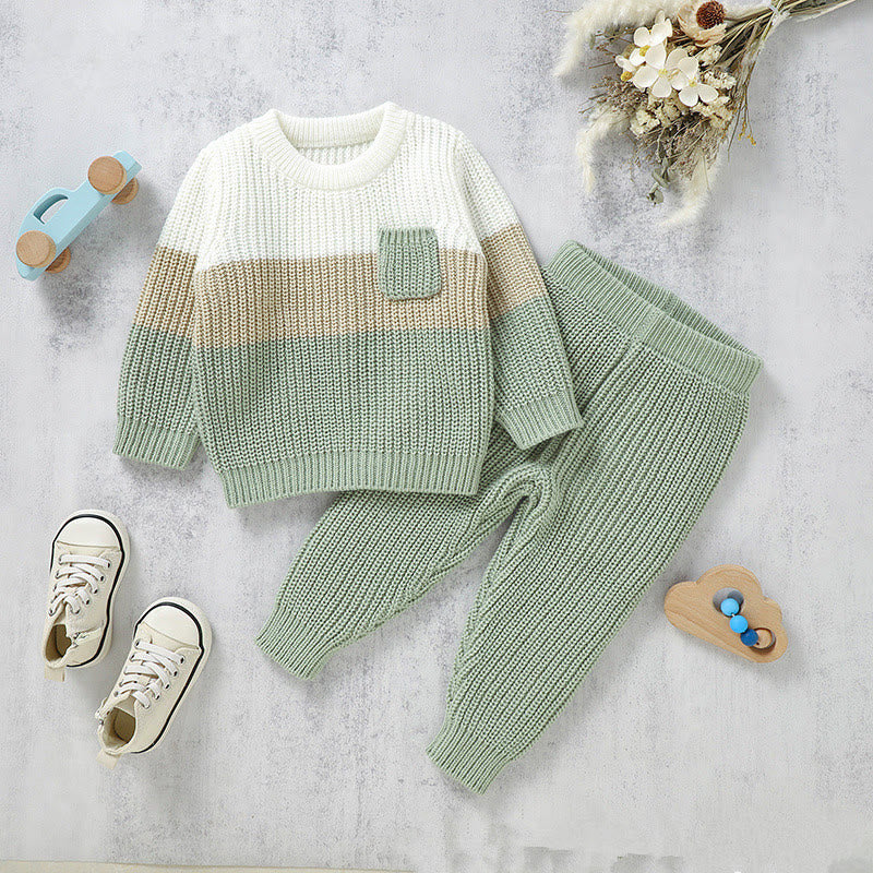 Baby Knitted Pocket Color Block Casual 2 Pieces Set