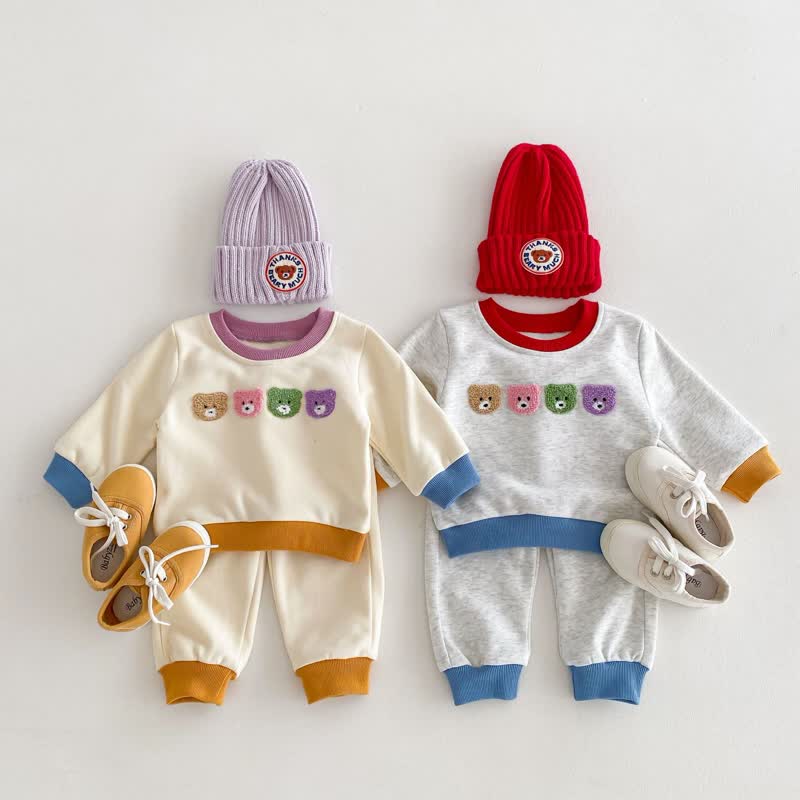 Baby 2-Piece Solid Color Casual Sweatsuit Set