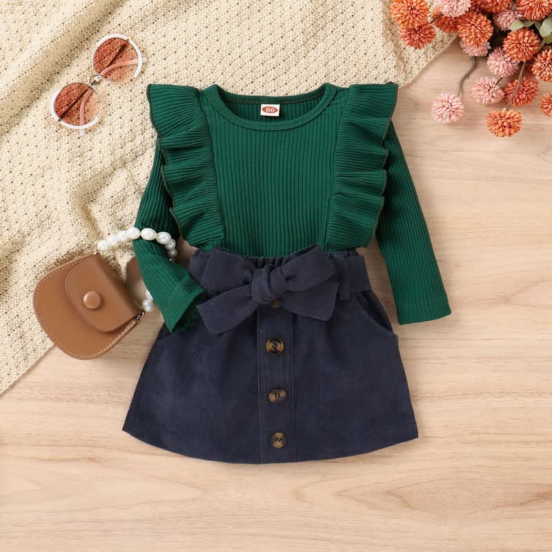 Baby 2-Piece Ruffled Corduroy Bow Set