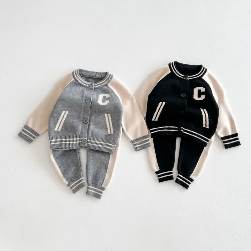 C Baby 2-Piece Knitted Baseball Sweatsuit Set
