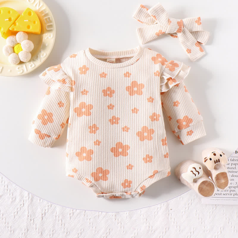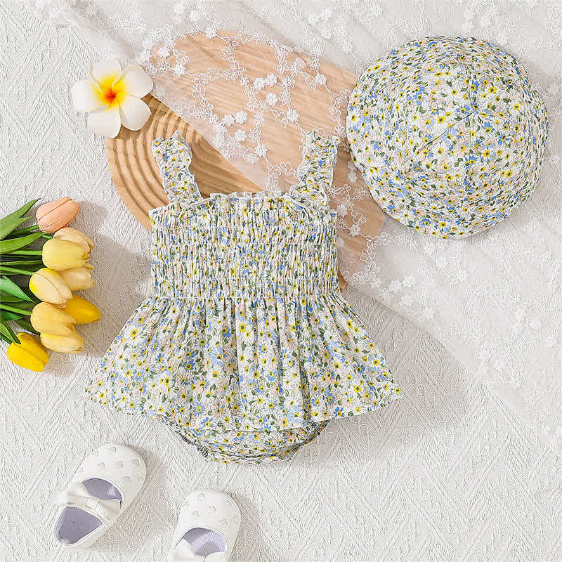 Baby Flower Sleeveless Skirted Bodysuit with Hat