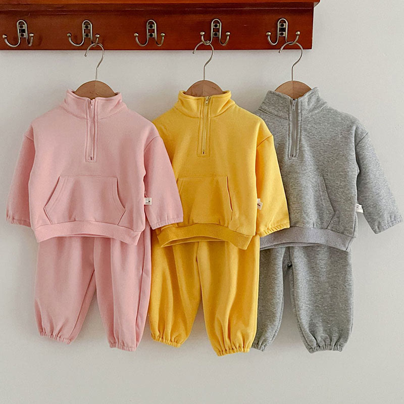 Baby Zip Solid Color Sweatshirt and Pants Set