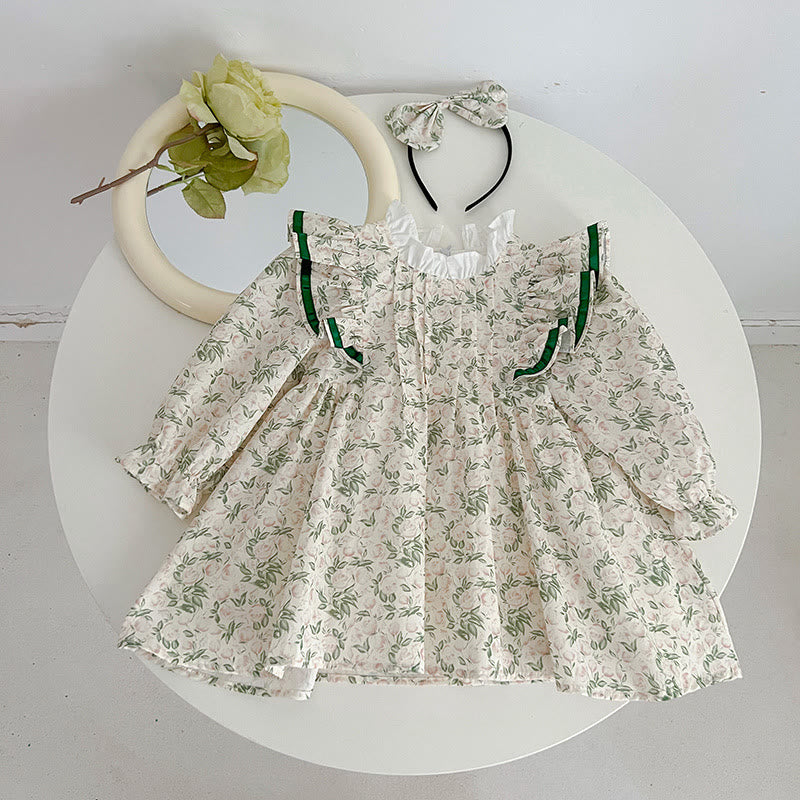Baby Leaves Ruffled Sleeves Dress with Hairband