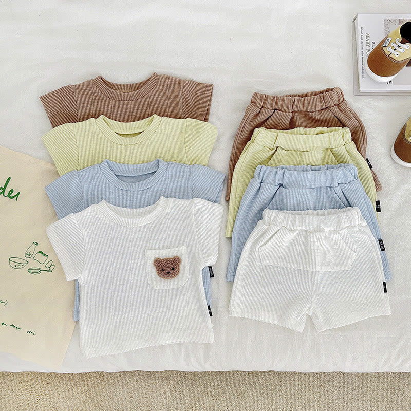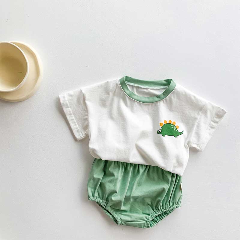 SKU: BB12397Material: 95% CottonSleeve Length: Short SleeveColor: Light Green, Beige*Babies grow at their own pace....