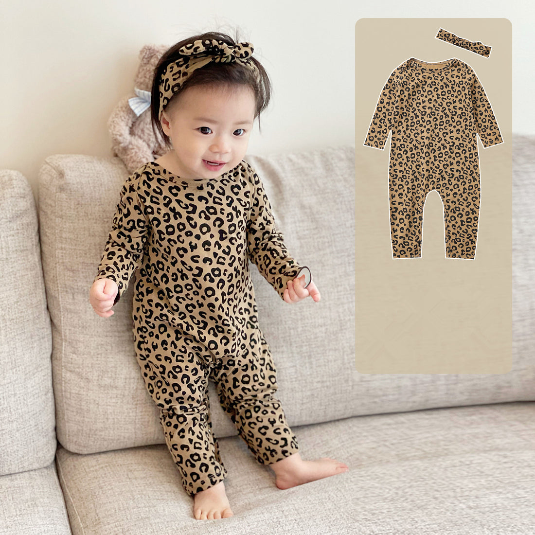 Baby Leopard Print Romper with Headband