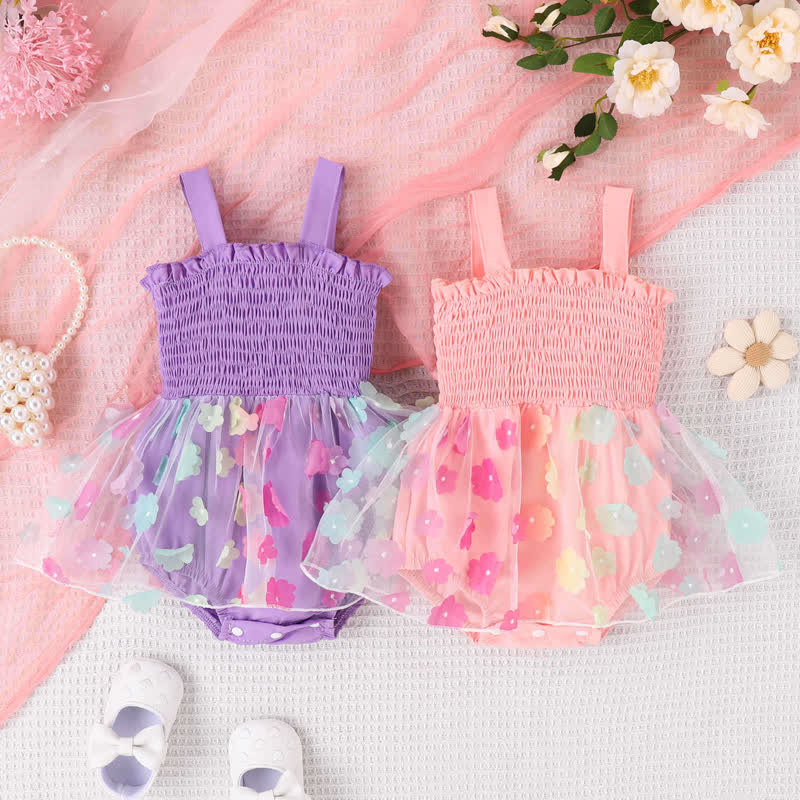 Baby Girl Flower Tulle Suspenders Bodysuit