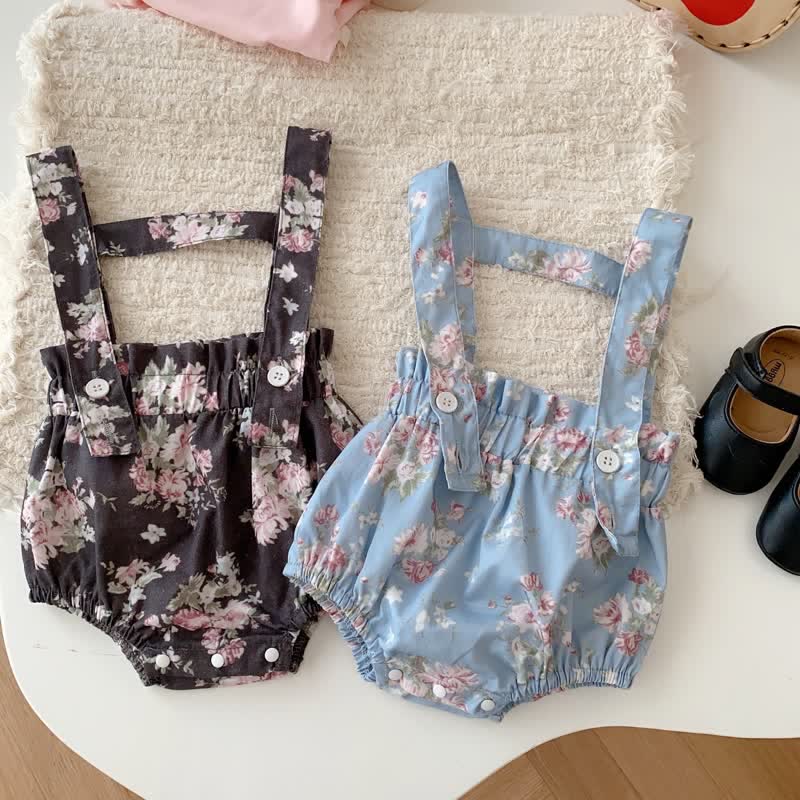 Baby Girl Flower Suspenders Bodysuit