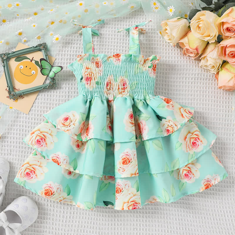 Baby Rose Suspenders Layered Green Dress