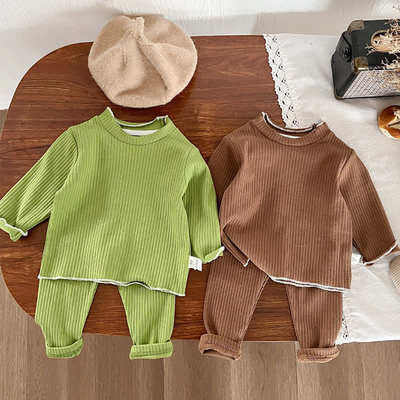 Baby 2-Piece Solid Color Ribbed Pajamas Set