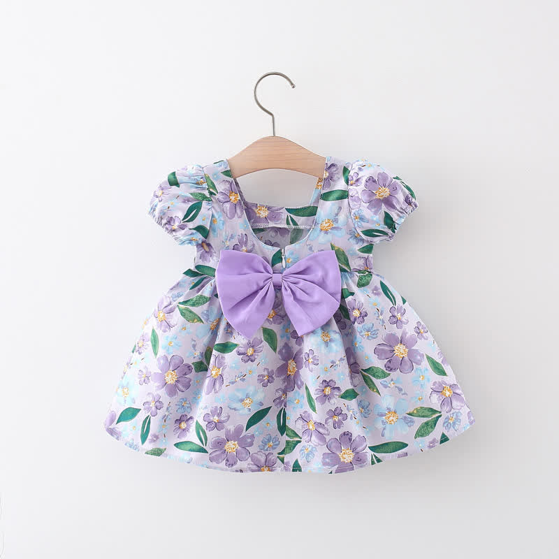 Baby Bowknot Pink Purple Flower Dress