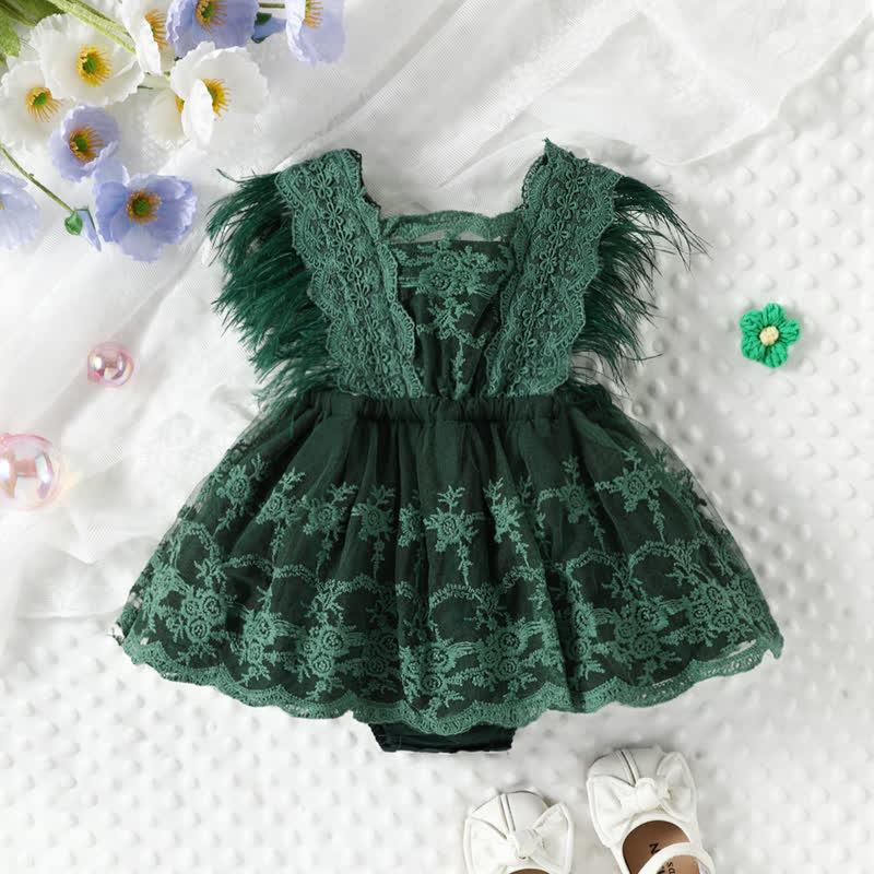 Baby Ruffled Flower Lace Skirted Bodysuit