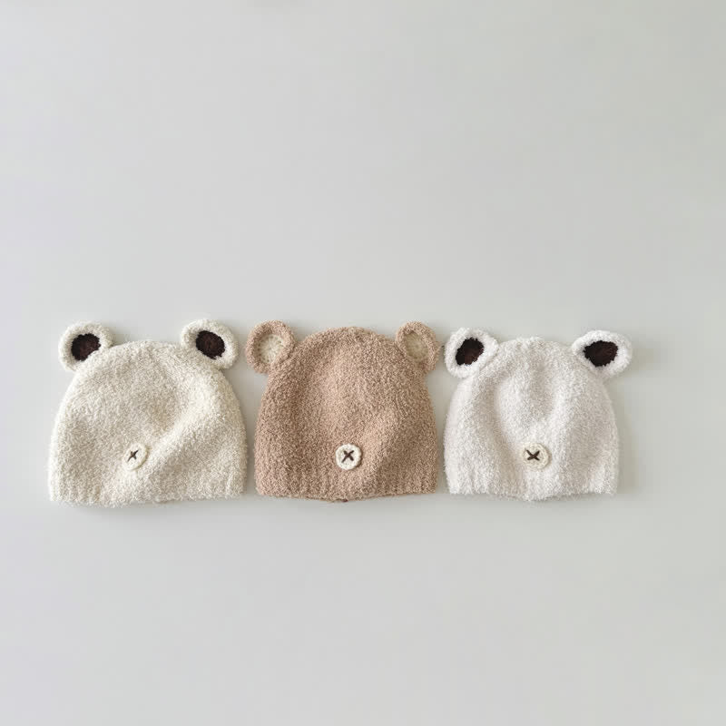 Baby Toddler Fleece Bear Knitted Beanie