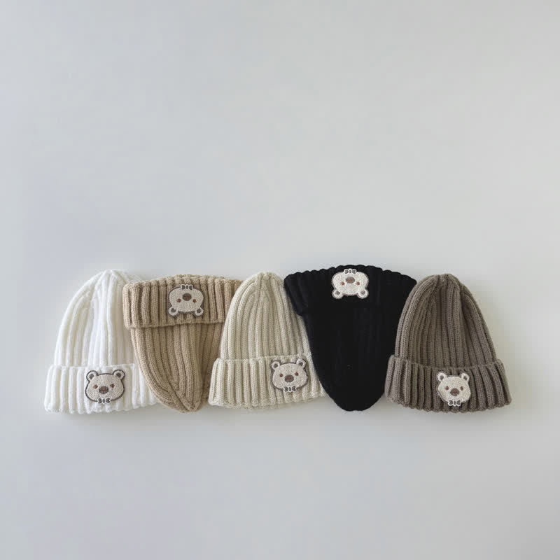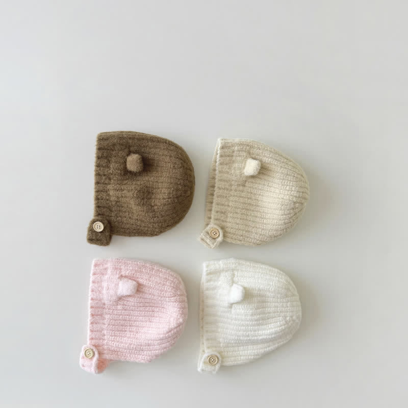 Baby Pure Color Bear Knitted Beanie