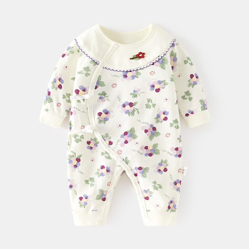 Baby Floral Grape Beige Kimono Romper