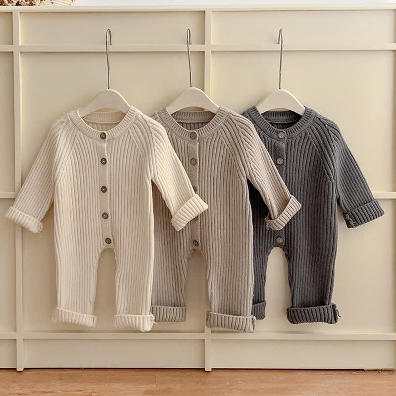 Baby Relax Knit Button Solid Color Romper