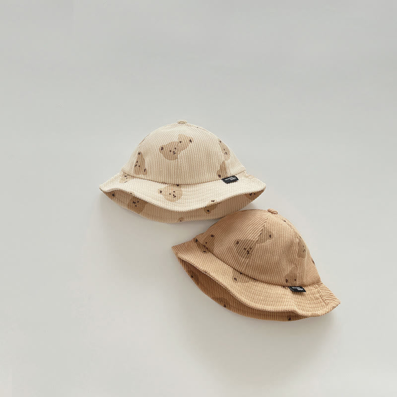 Baby Lovely Cartoon Bear Head Corduroy Bucket Hat
