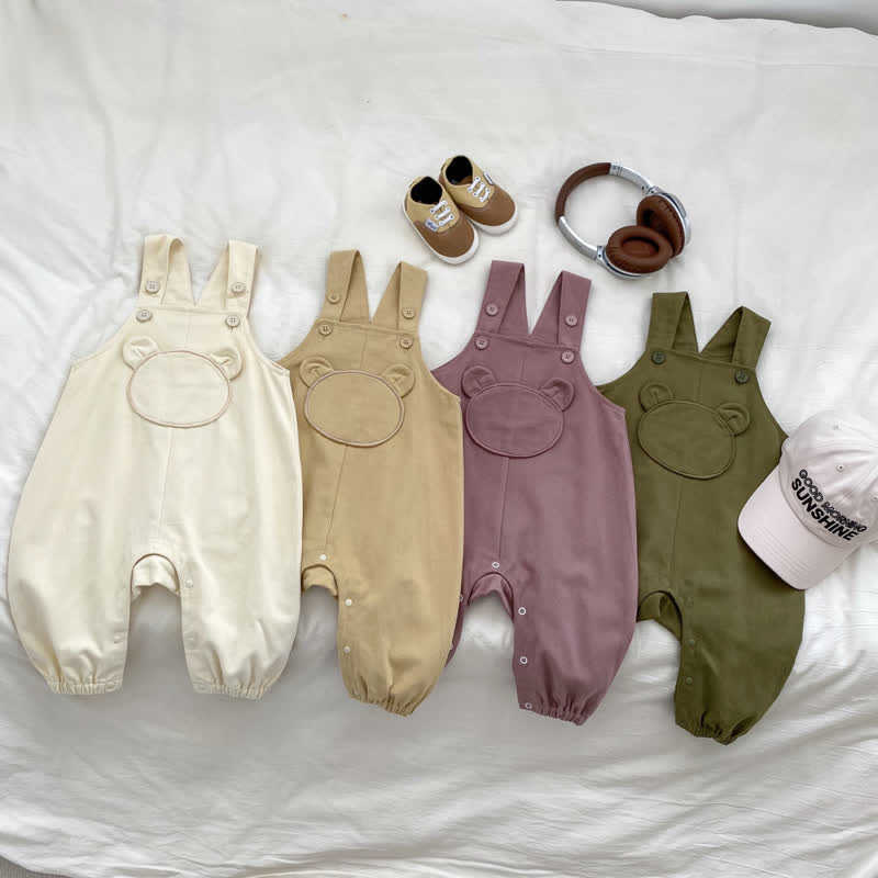 Baby Solid Color Cute Bear Overalls