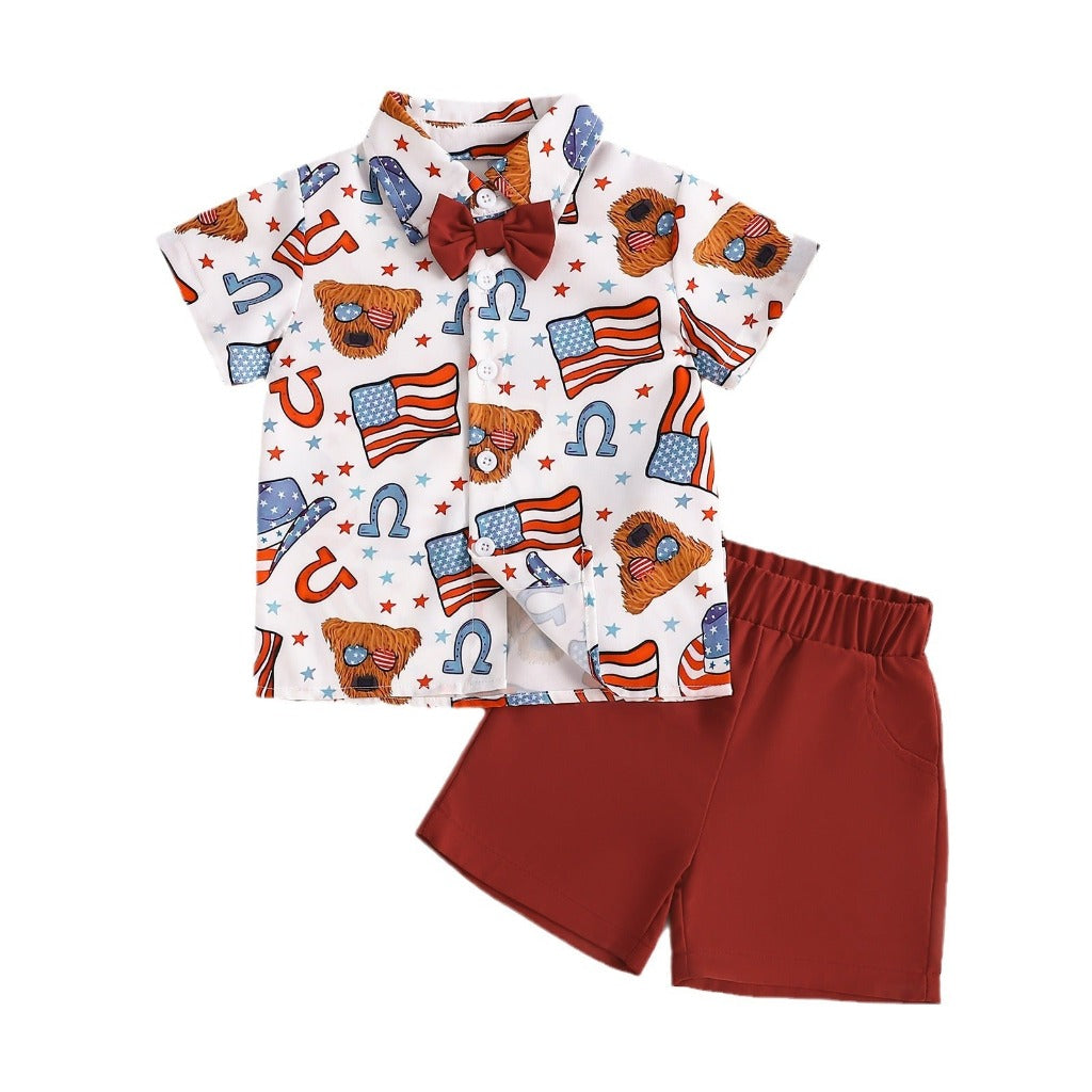 Boys' 4th of July Celebration Matching Set: shorts, button up shirt and bow tie. Made with...