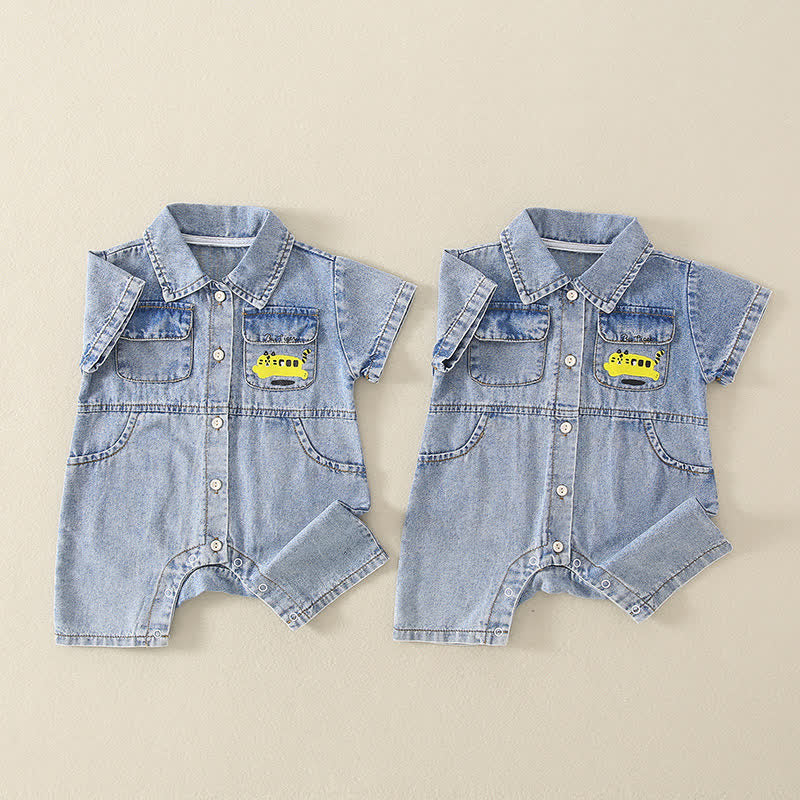 CUTE BOY Baby Bear Denim Romper
