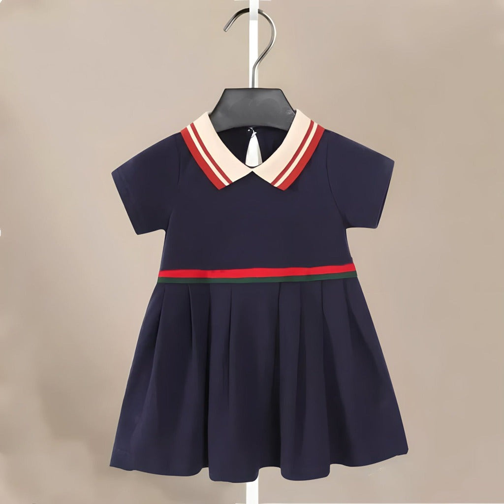 Girls Elegant Retro Dress in Navy Blue or Gray
