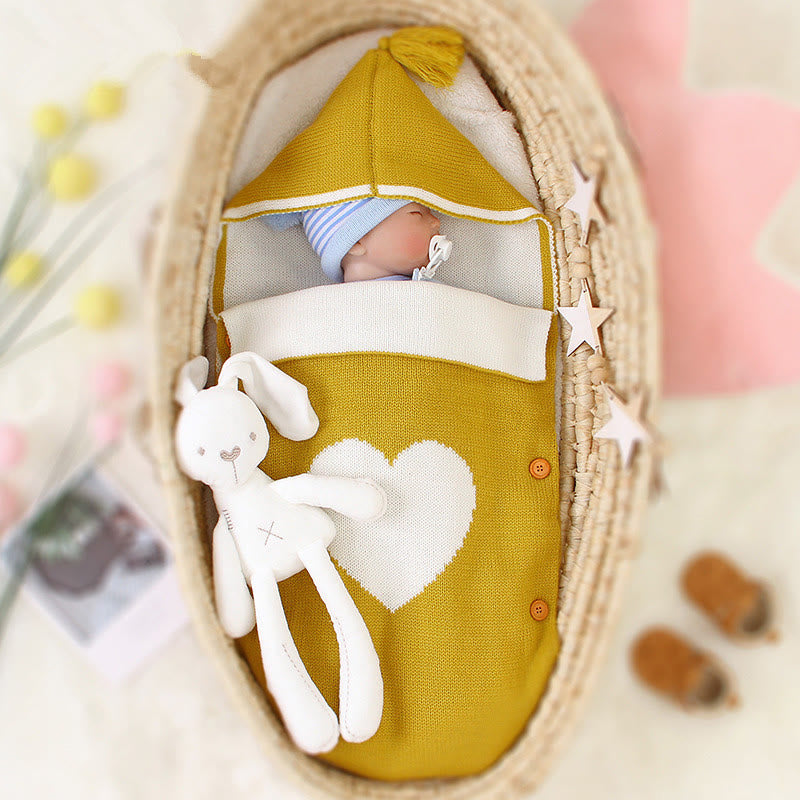 Newborn Baby Heart Knitted Hooded Sleeping Bag