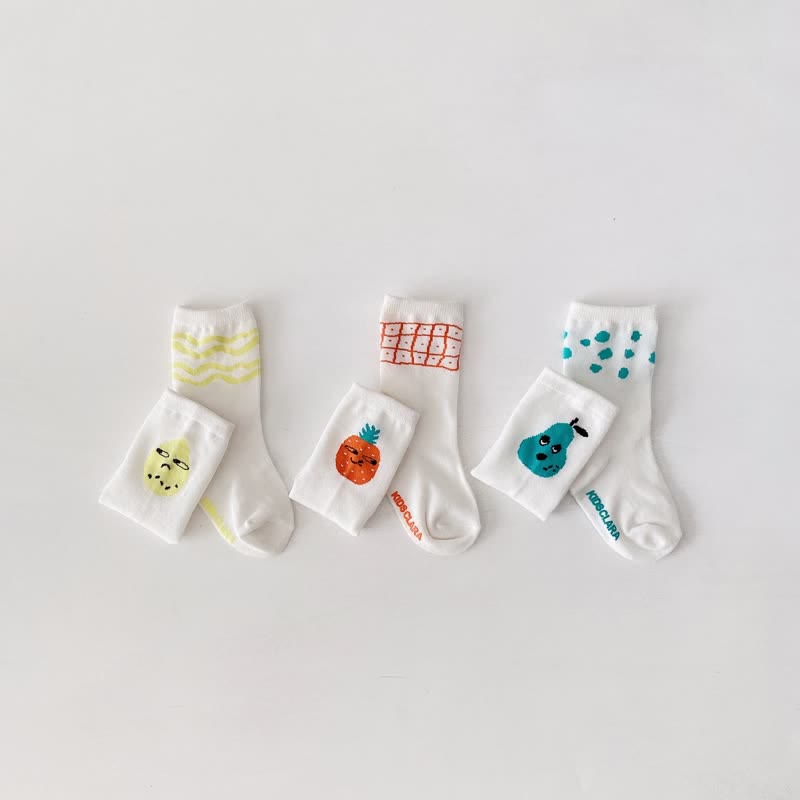 3 Pairs Baby Fruit Soft White Socks