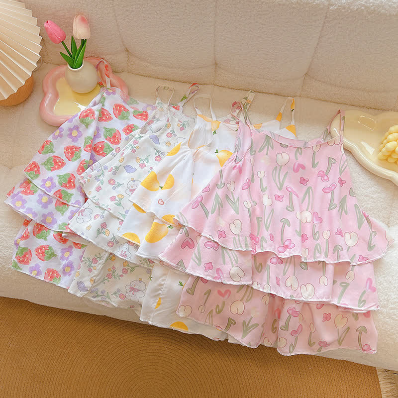 Baby Floral Fruit Strap Pajamas Set