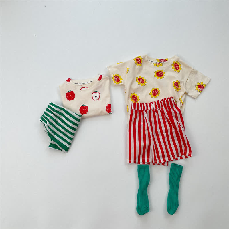 Toddler 2-Piece Apple Sunflower Striped Set