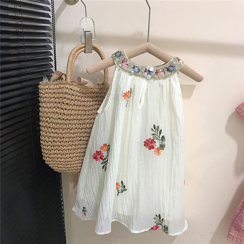 Kid Girl Embroidered Floral Sleeveless Halterneck Beach Dress