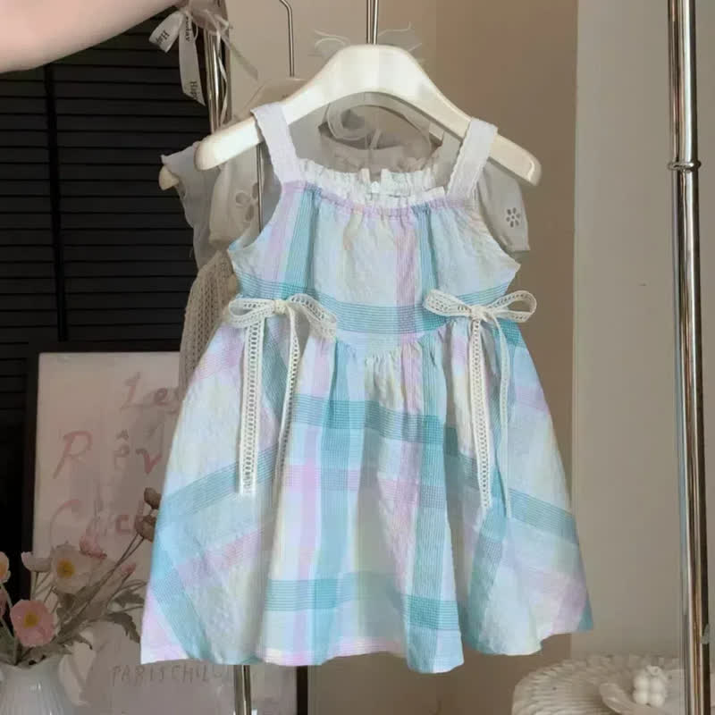 Toddler Blue Plaid Double Bows Dress