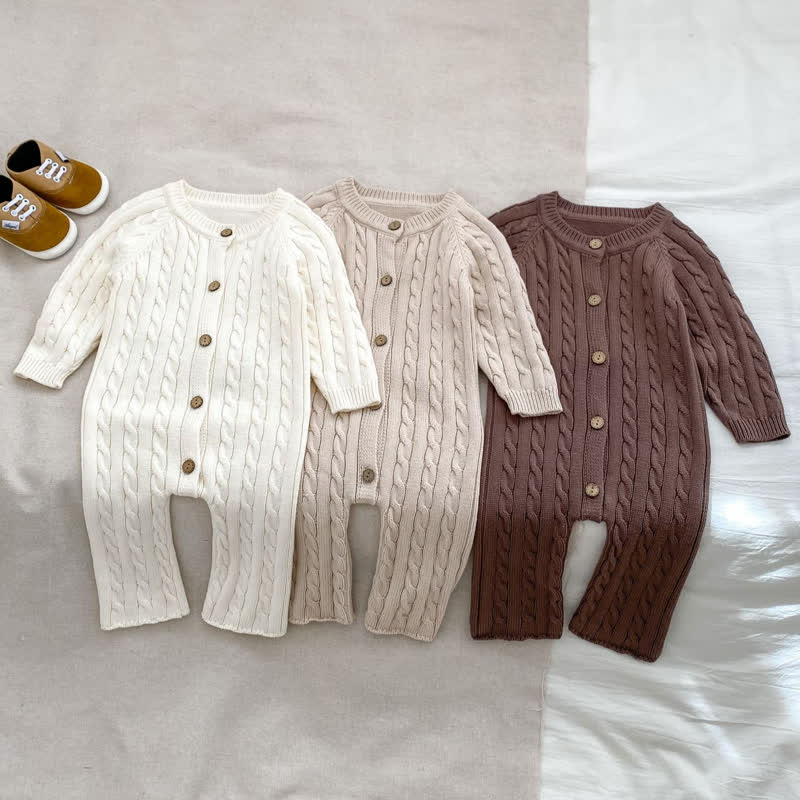 Baby Basic Knitted Twist Button Romper