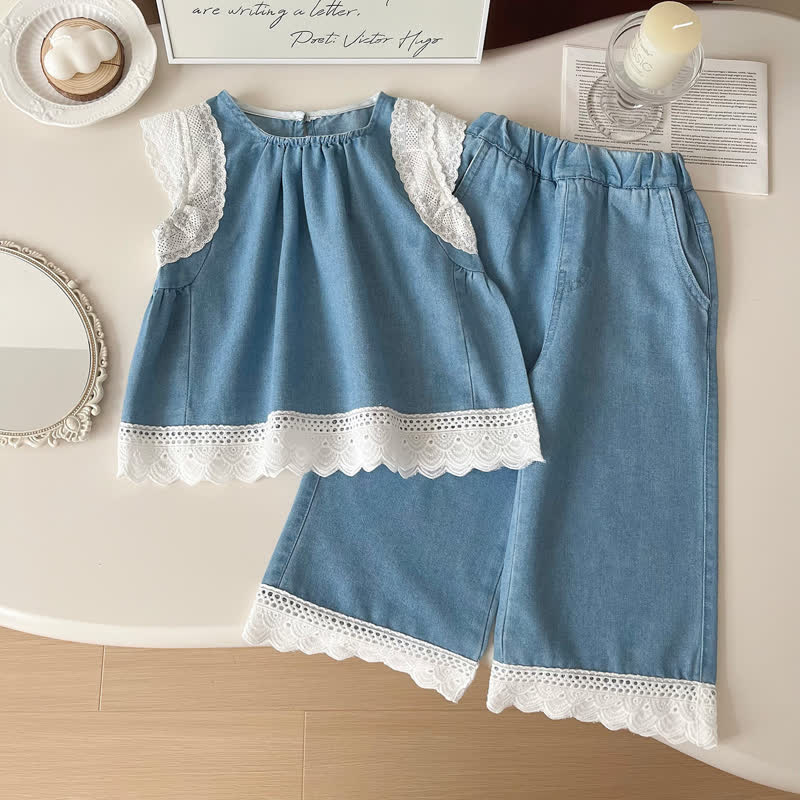 Toddler 2-Piece Lace Denim Sleeveless Set