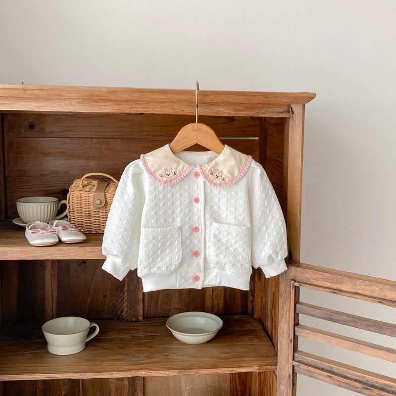 Toddler Bunny Flower Lapels White Coat