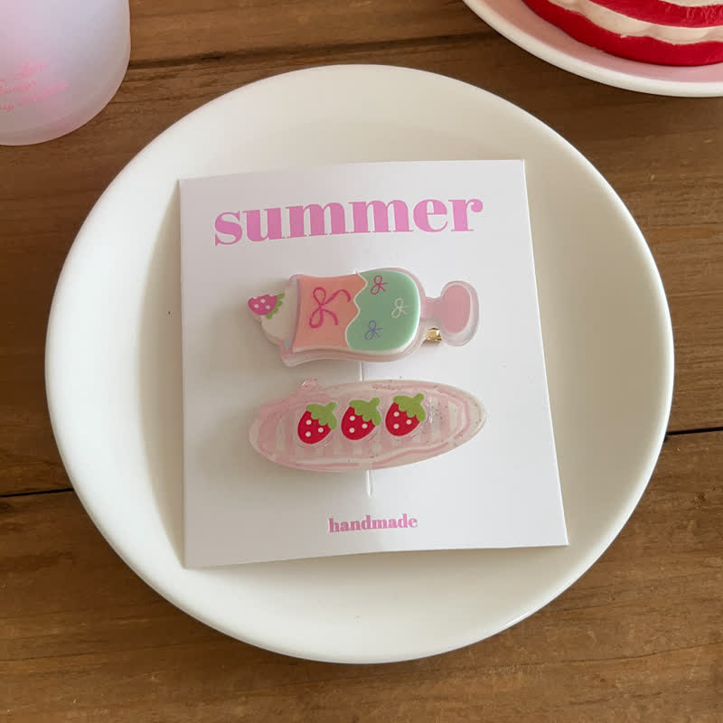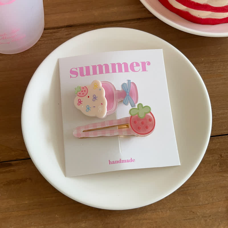 1 Pair Baby Strawberry Ice Cream Hair Clips