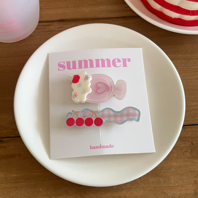 1 Pair Baby Cherry Ice Cream Hair Clips
