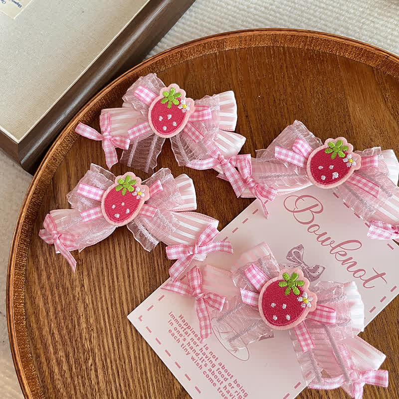 Baby Strawberry Lace Plaid Bow Hair Clips