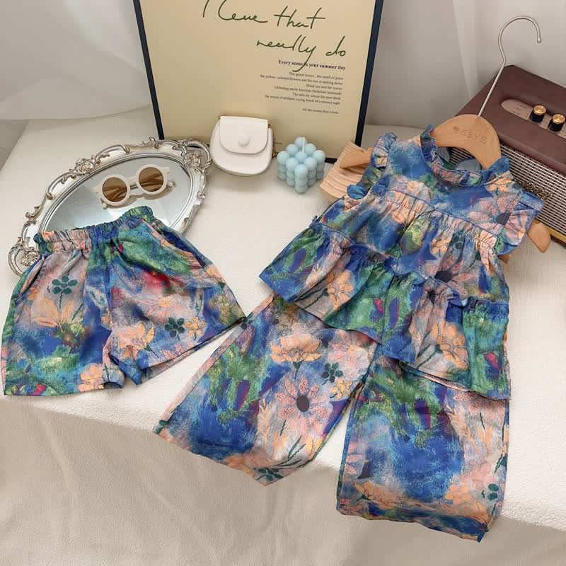 Kid Girl Suspenders Wide-leg Pants 2-piece Set