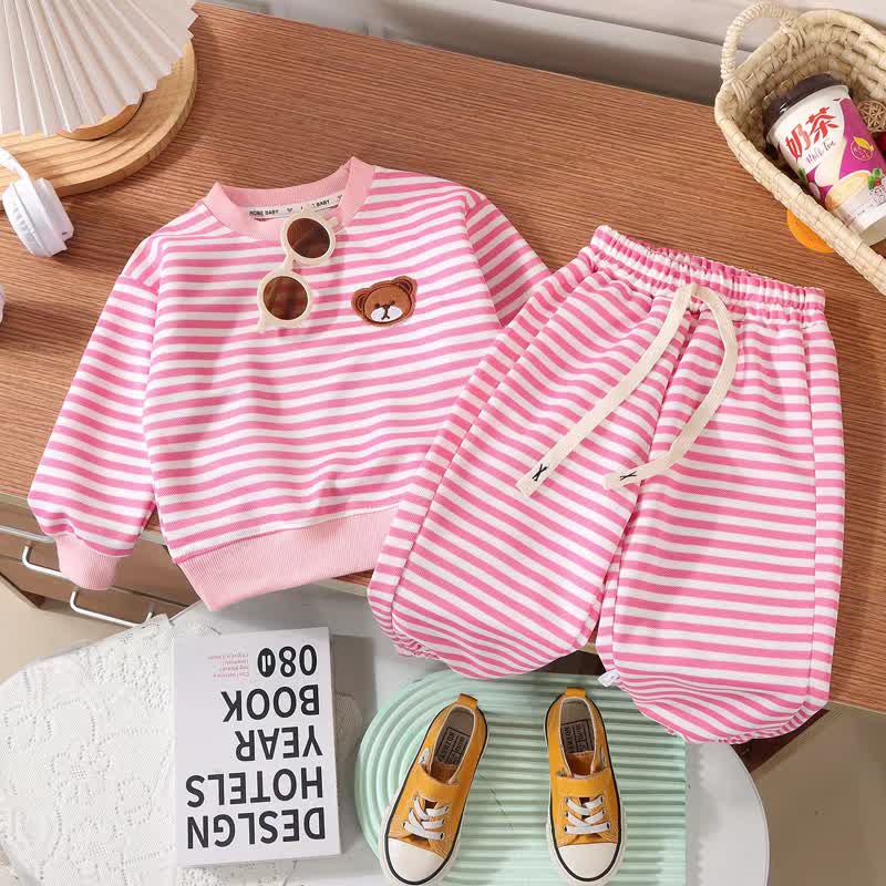 Toddler 2-Piece Bear Striped Sweatsuit Set