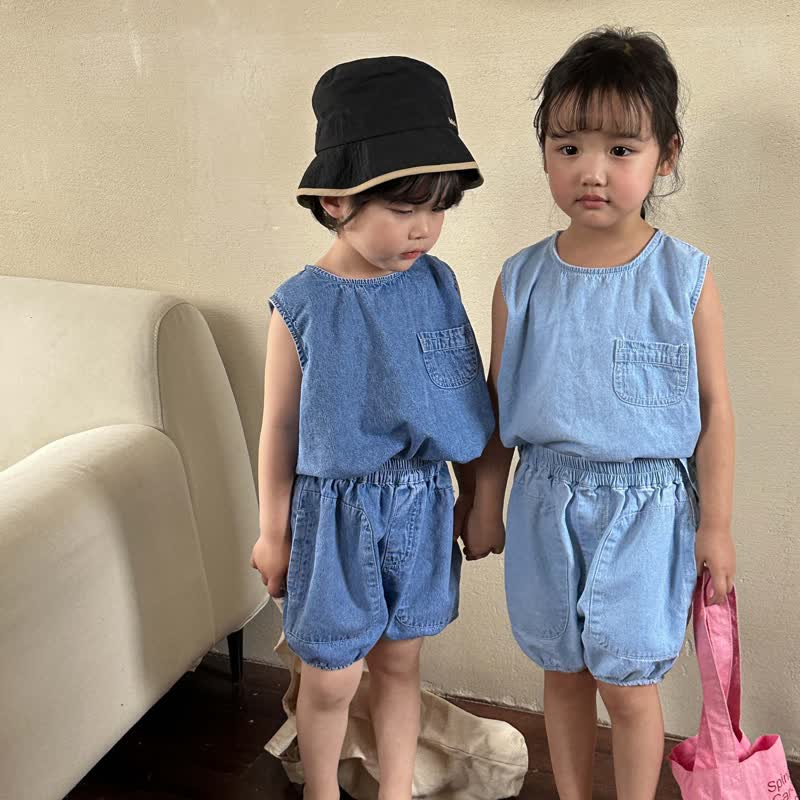 Kid Girl Blue Soft Denim Tank Top 2-piece Set