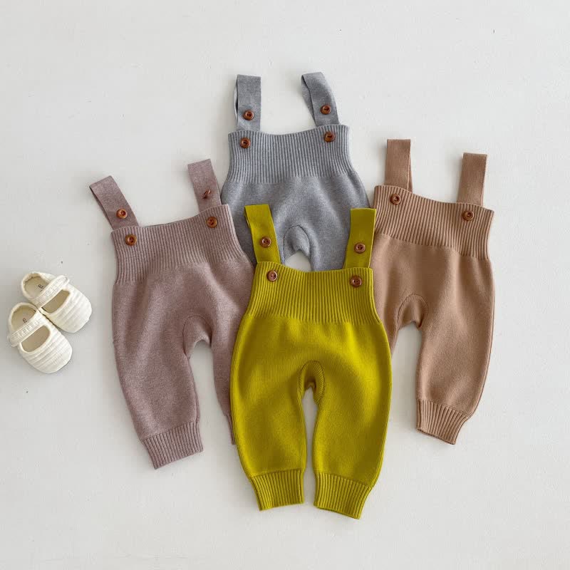 Baby Solid Color Knitted Button Overalls