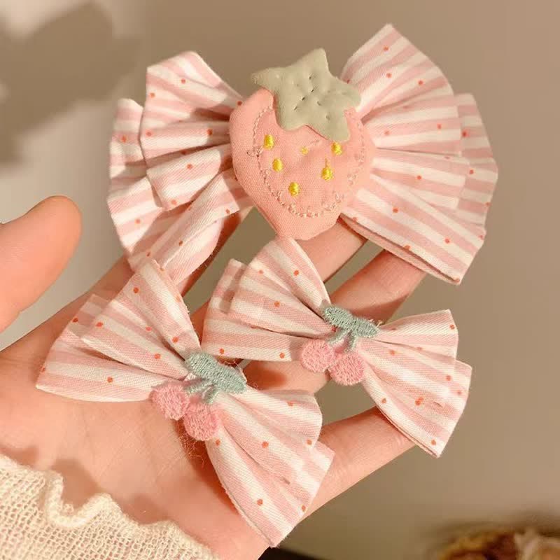 Baby Strawberry Cherry Bow Striped Hair Clips
