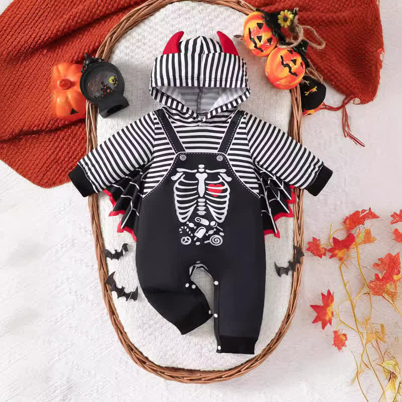 Baby Bat Skeleton Striped Hooded Romper