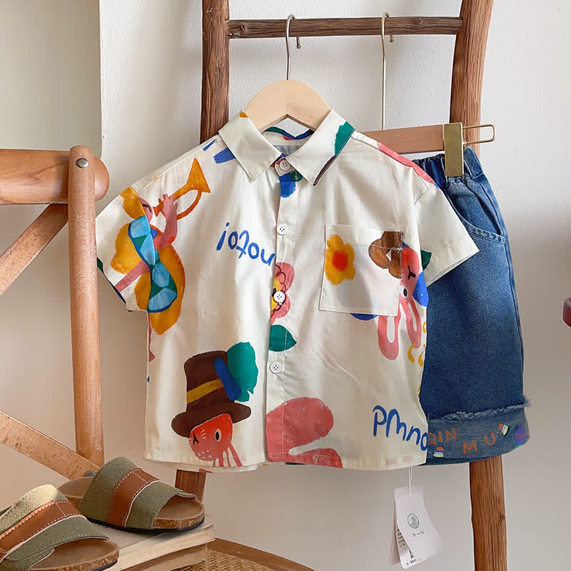 Kid Boy Colorful Buttons Shirt Oil Painting Jacket Top