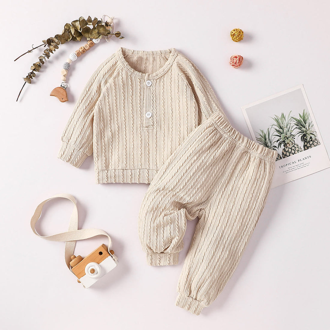 Baby Solid Color Twist Knitted Apricot 2 Pieces Set